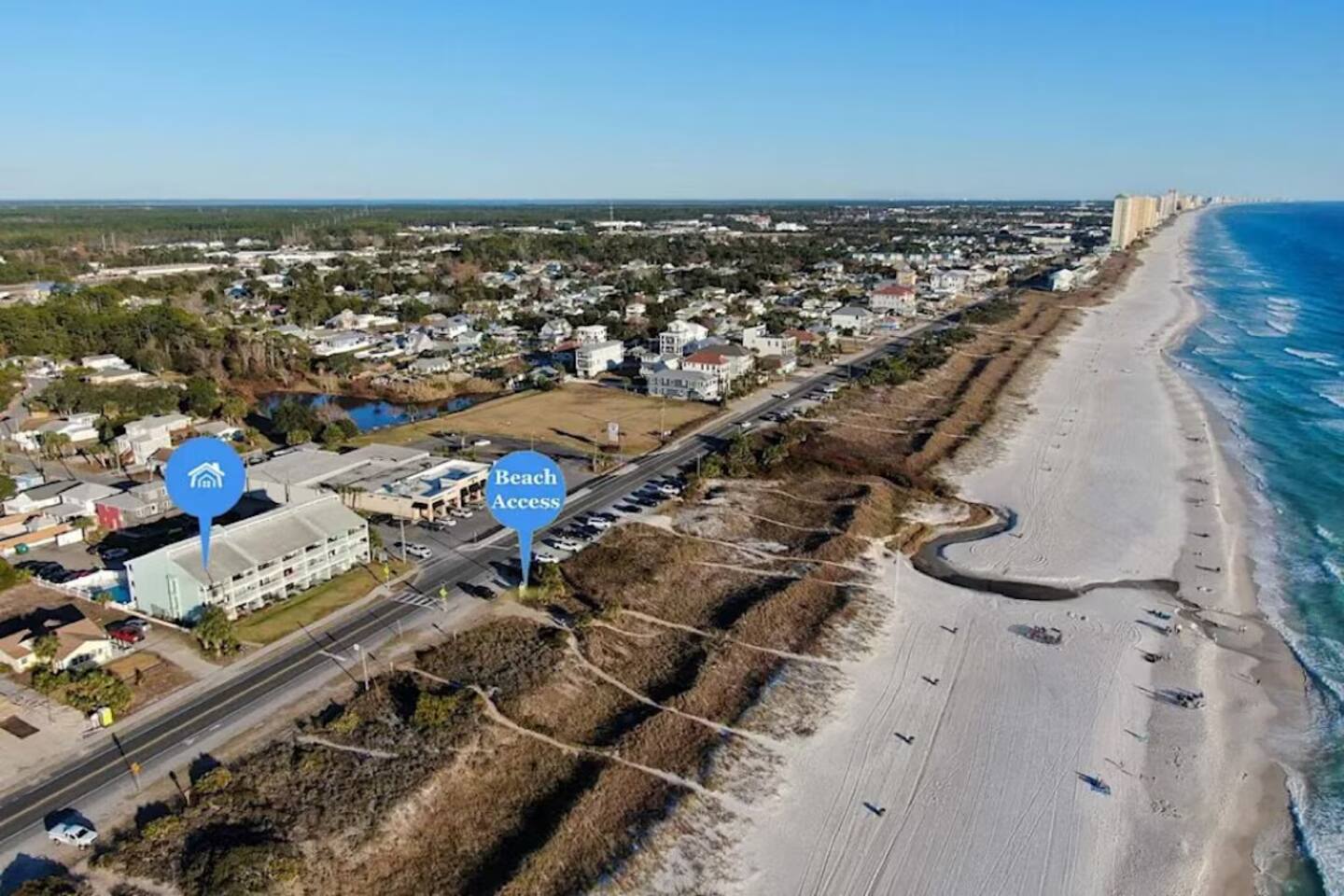 The property is within a short drive of excellent restaurants, shopping establishments and grocery stores. If you need a break from fun in the sun and white sand, Gulf World Marine Park, Panama City Beach Winery, and Shipwreck Island Waterpark are all within minutes of our front door.