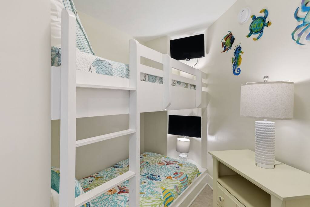 - Family-friendly condo at Waterscape Resort on Okaloosa Island - 2rd-floor unit – steps to parking, pools & water park - Sleeps 8: 2 king suites w/ private baths, bunk room & sleeper sofa - Resort amenities: pools, lazy river, gym, kids’ activities & snack bar (seasonal) - 5 Smart TVs throughout the condo – perfect for families or groups - Free daily beach service: 2 chairs + umbrella (seasonal) - Walk to Gulfarium, pier, shops & restaurants - Only 10-15 mins to Destin!