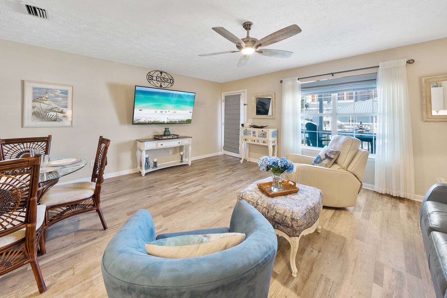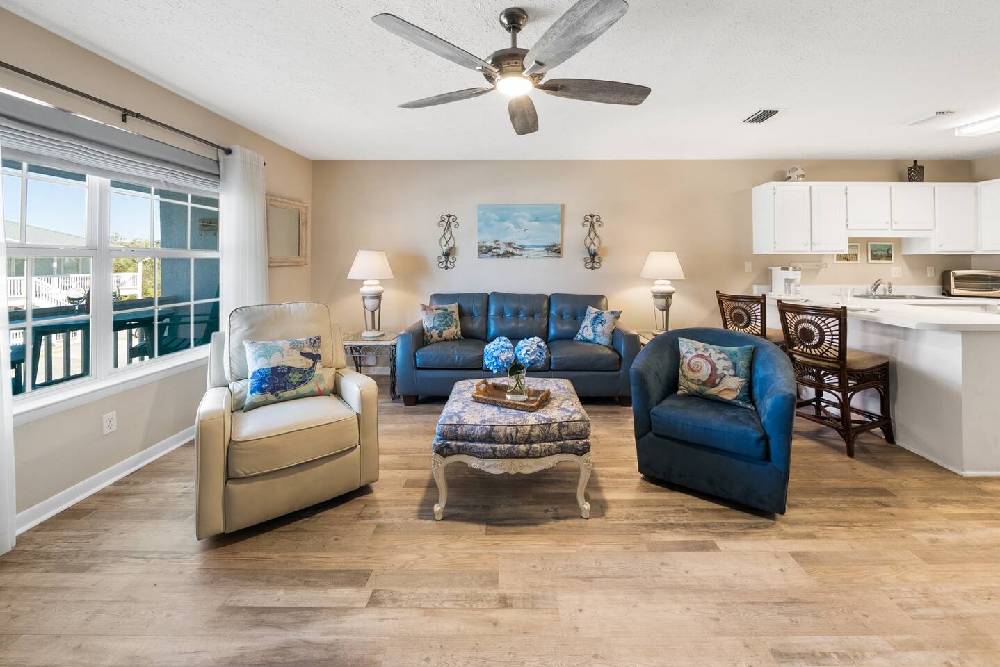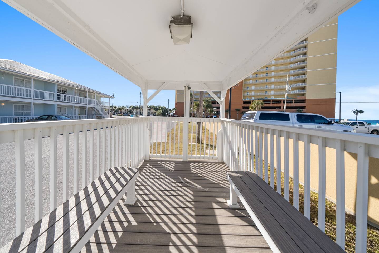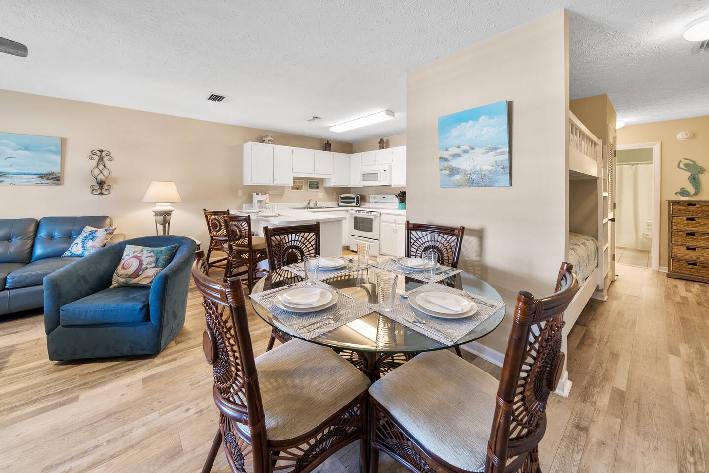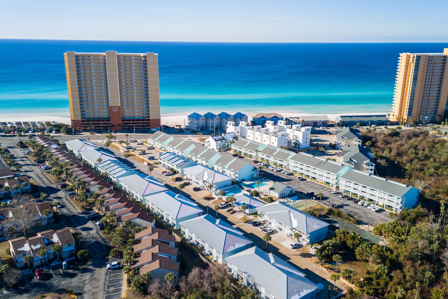 Welcome to your home away from home in Panama City Beach, FL! Looking for an escape from the hustle and bustle while still being close to all that Panama City Beach has to offer? Look no further than this beachfront condo just steps from the gulf! We’re located in West Panama City Beach where the beach remains untouched. Come prepared to make wonderful memories! Bring your toothbrush and clothes and we’ll do the rest – vacation: simplified! Whether you’re in the living room or kitchen or relaxing on the balcony, you can’t help but get smell the salt air from lost the Gulf of Mexico! Our comfortable furnishings and our newly updated interior pair perfectly to create a quiet, cozy beach retreat for you and your family. The property is within a short drive of excellent restaurants, shopping establishments and grocery stores. If you need a break from fun in the sun and white sand, Gulf World Marine Park, Panama City Beach Winery, and Shipwreck Island Waterpark are all within minutes of our front door. We’re here to help answer any questions you may have – from planning your trip through the end of your vacation. We knew that Wendwood F7 was special the first time we visited – and when we came across this property, we knew we had found a true piece of paradise. We look forward to sharing our PCB treasure (our home) with you and your family. Our team is dedicated to ensuring your vacation is one to be remembered! Sleeping Arrangements (Sleeps 5): • Master bedroom offers a king size bed with access to full bathroom • The living room offers twin bunk beds & sleeper sofa Sorry, no pets are allowed. No smoking/vaping. We are not wheelchair accessible.