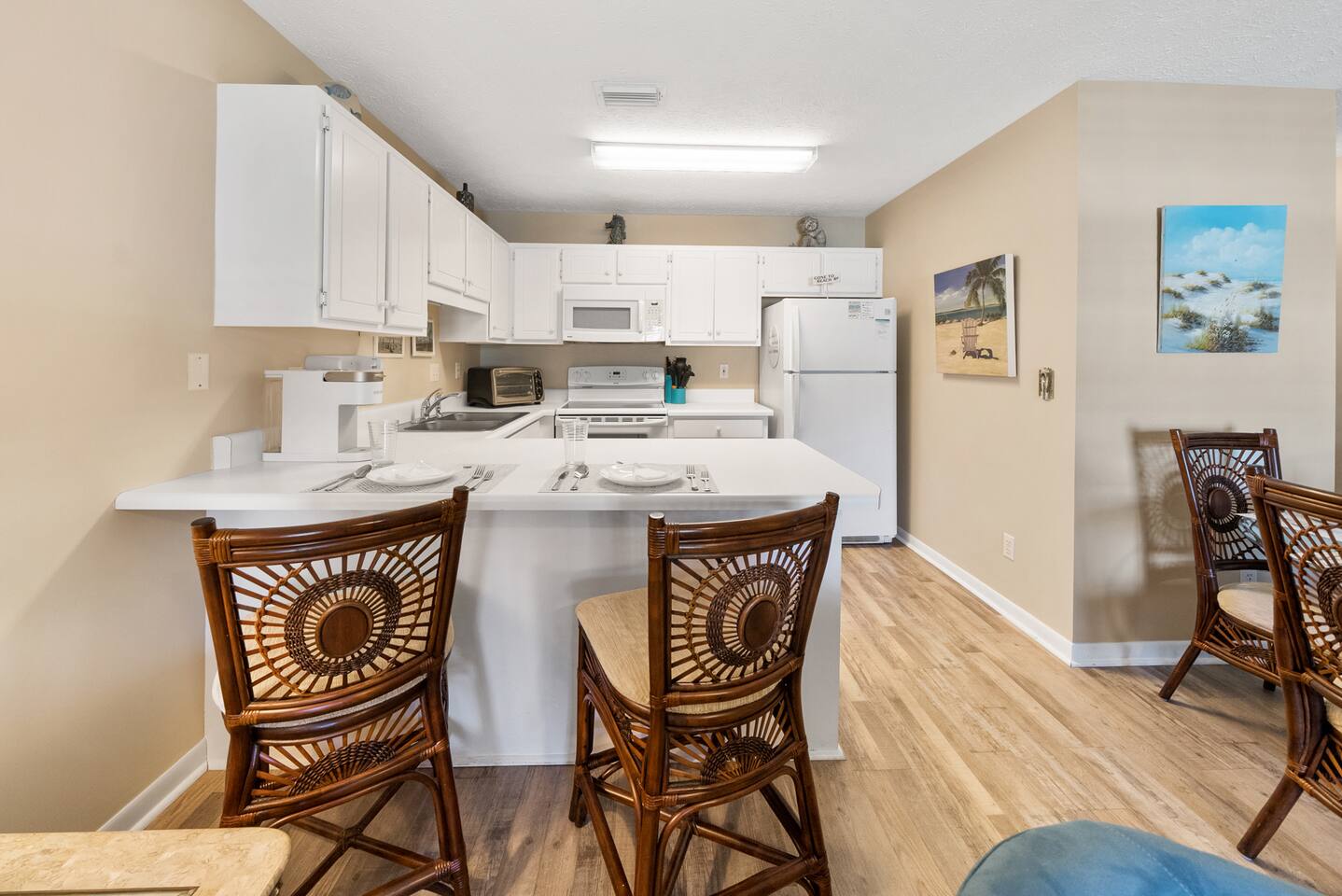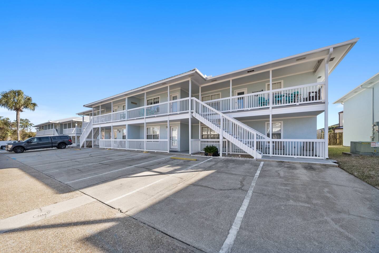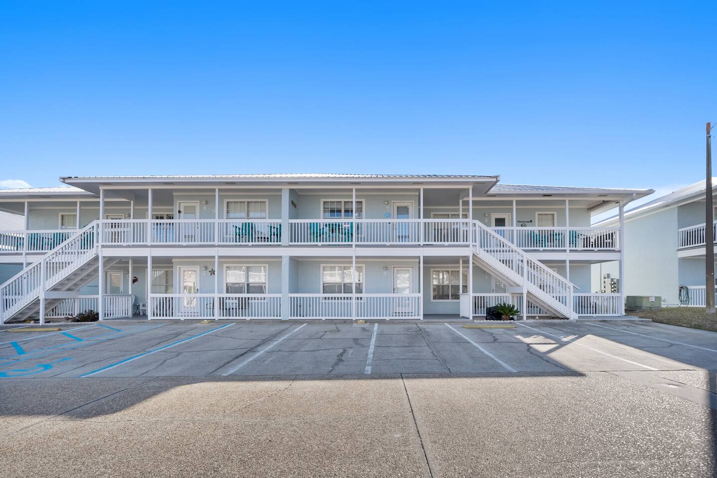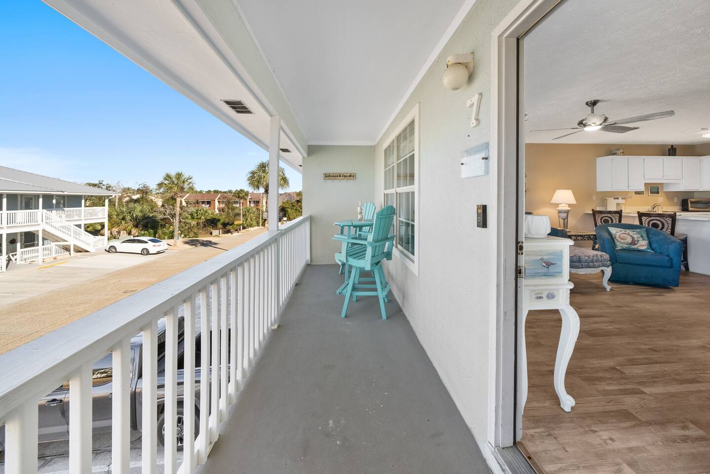 Welcome to Curl-Away-Cottage, a gulf side retreat! - Location, location, location! - Steps from the Gulf! - Master with King Bed (Tempur Pedic) - Private Balcony - Smart TVs - Community Pool & Outdoor Shower - Low Rise Condo; 2nd Floor Unit - Washer & Dryer - Family Friendly & Quiet Community - Fully equipped kitchen - Beach Chairs & Umbrella - Pack N Play - Beach Wagon