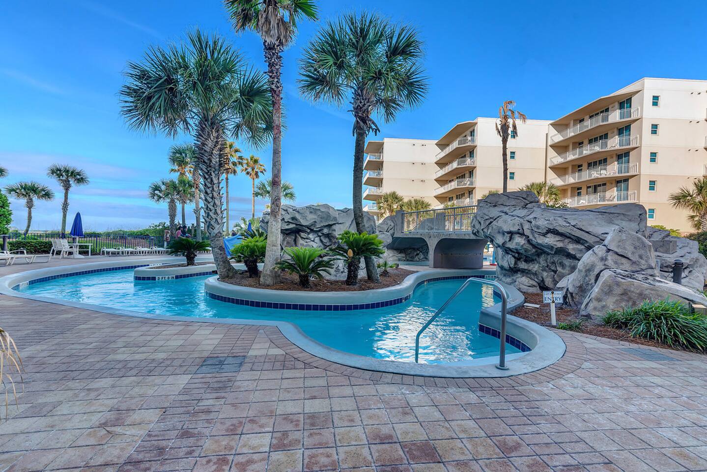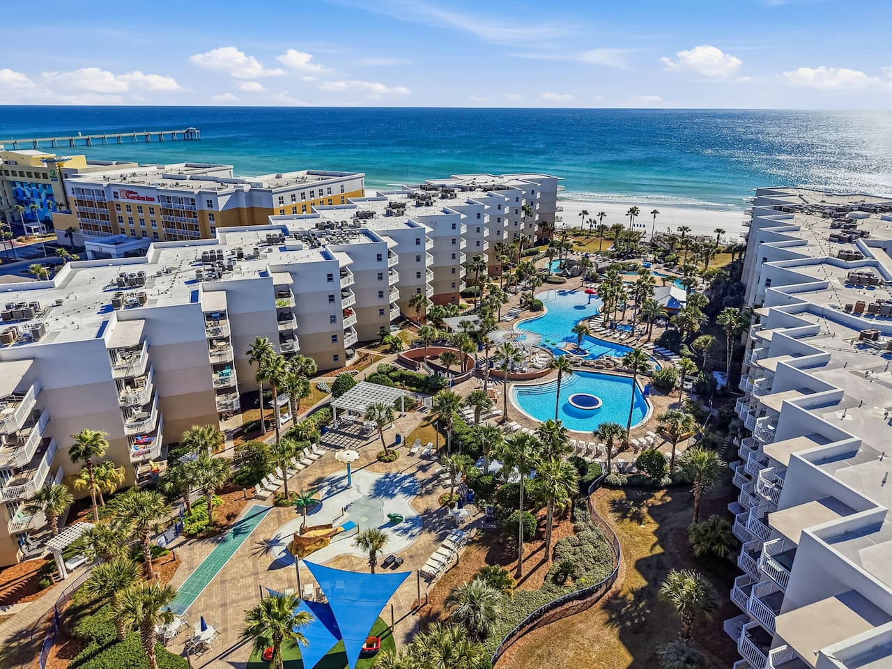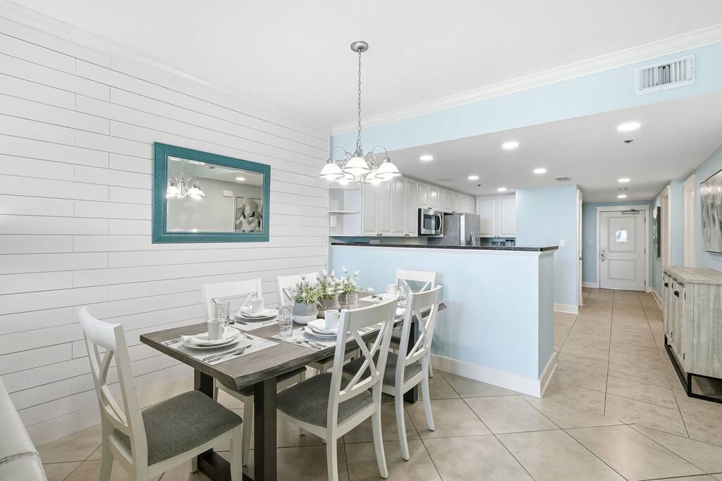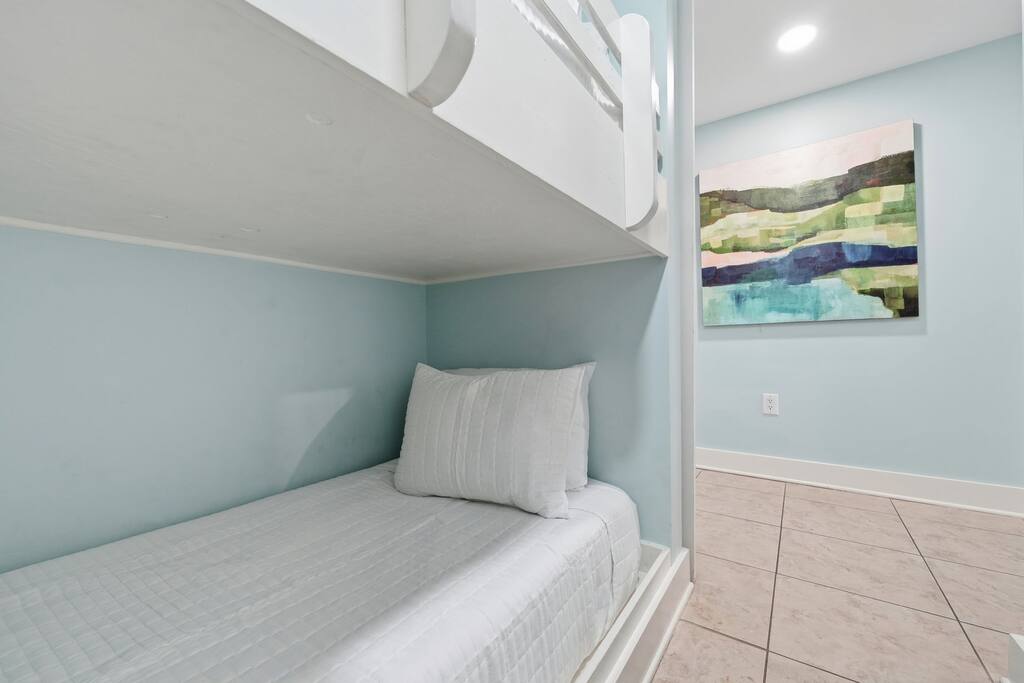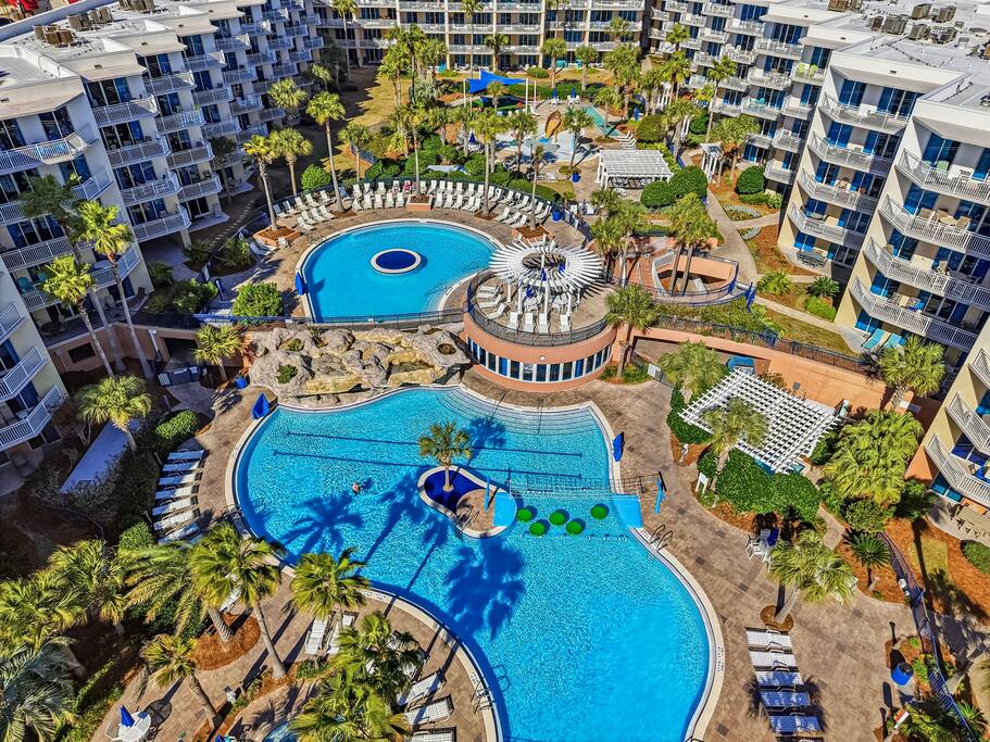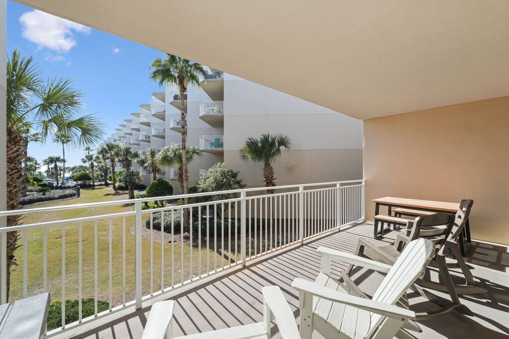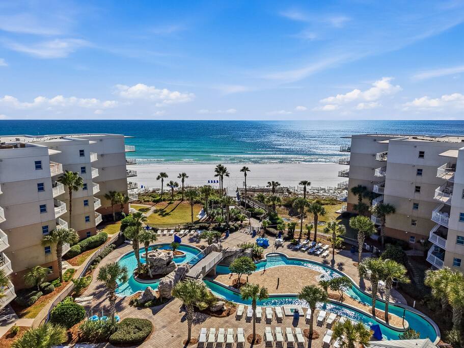 * Family-friendly condo at Waterscape Resort on Okaloosa Island * 3rd floor unit – steps to parking, pools & water park * Sleeps 8: 2 King Suites w/ private baths, bunk room & Murphy Bed (Queen Bed) * Resort amenities: pools, lazy river, gym, kids’ activities & snack bar * 4 Smart TVs throughout the condo – perfect for families or groups * Free daily beach service: 2 chairs + umbrella (seasonal) * Walk to Gulfarium, pier, shops & restaurants * Only 10-15 mins to Destin!