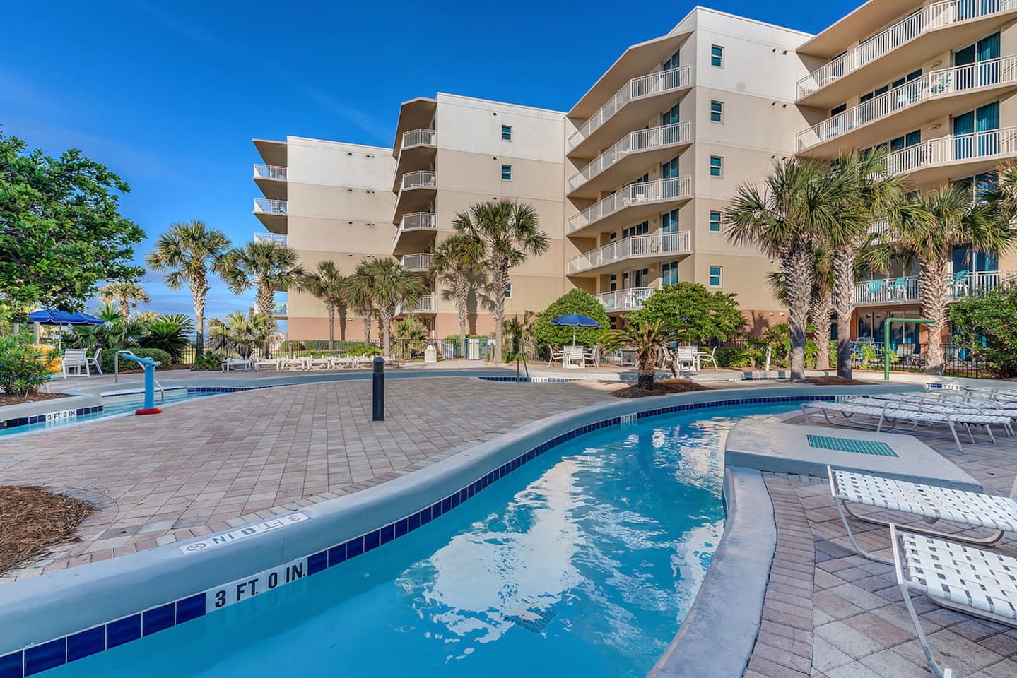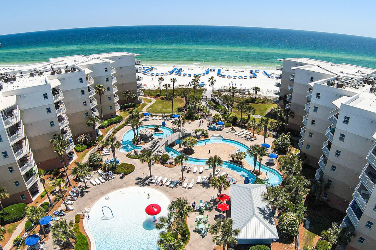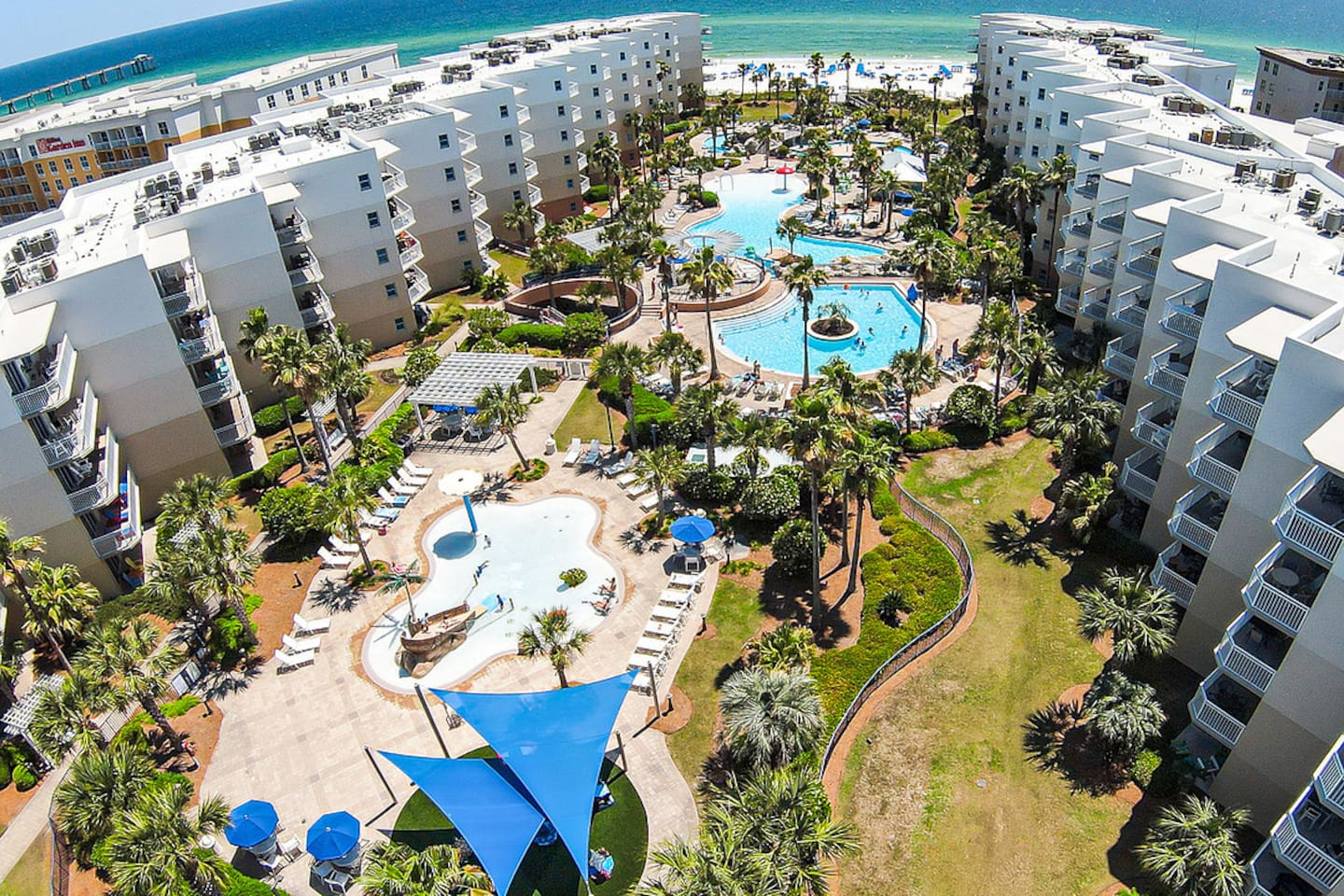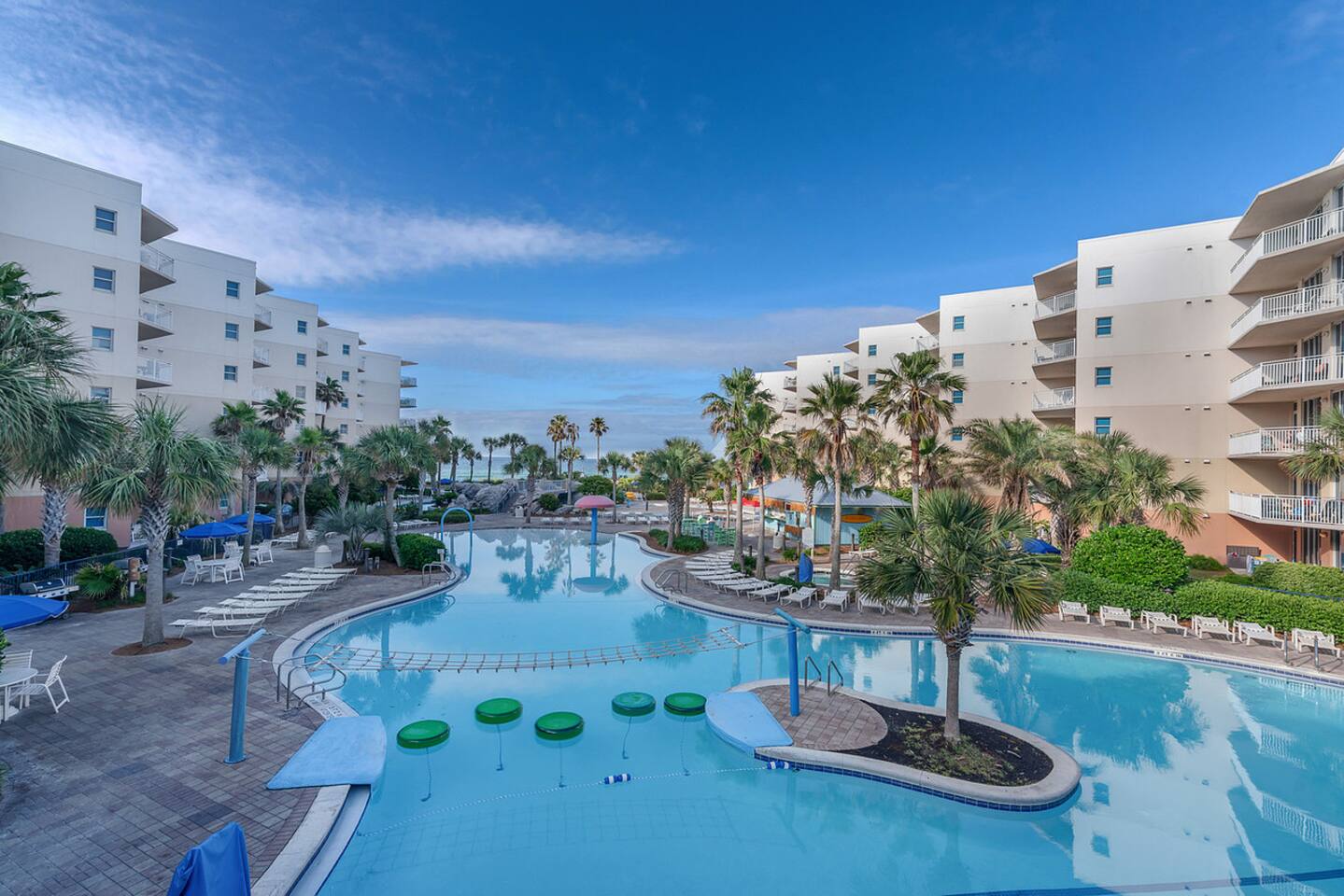 * Family-friendly condo at Waterscape Resort on Okaloosa Island * 3rd floor unit – steps to parking, pools & water park * Sleeps 8: 2 King Suites w/ private baths, bunk room & Murphy Bed (Queen Bed) * Resort amenities: pools, lazy river, gym, kids’ activities & snack bar * 4 Smart TVs throughout the condo – perfect for families or groups * Free daily beach service: 2 chairs + umbrella (seasonal) * Walk to Gulfarium, pier, shops & restaurants * Only 10-15 mins to Destin!