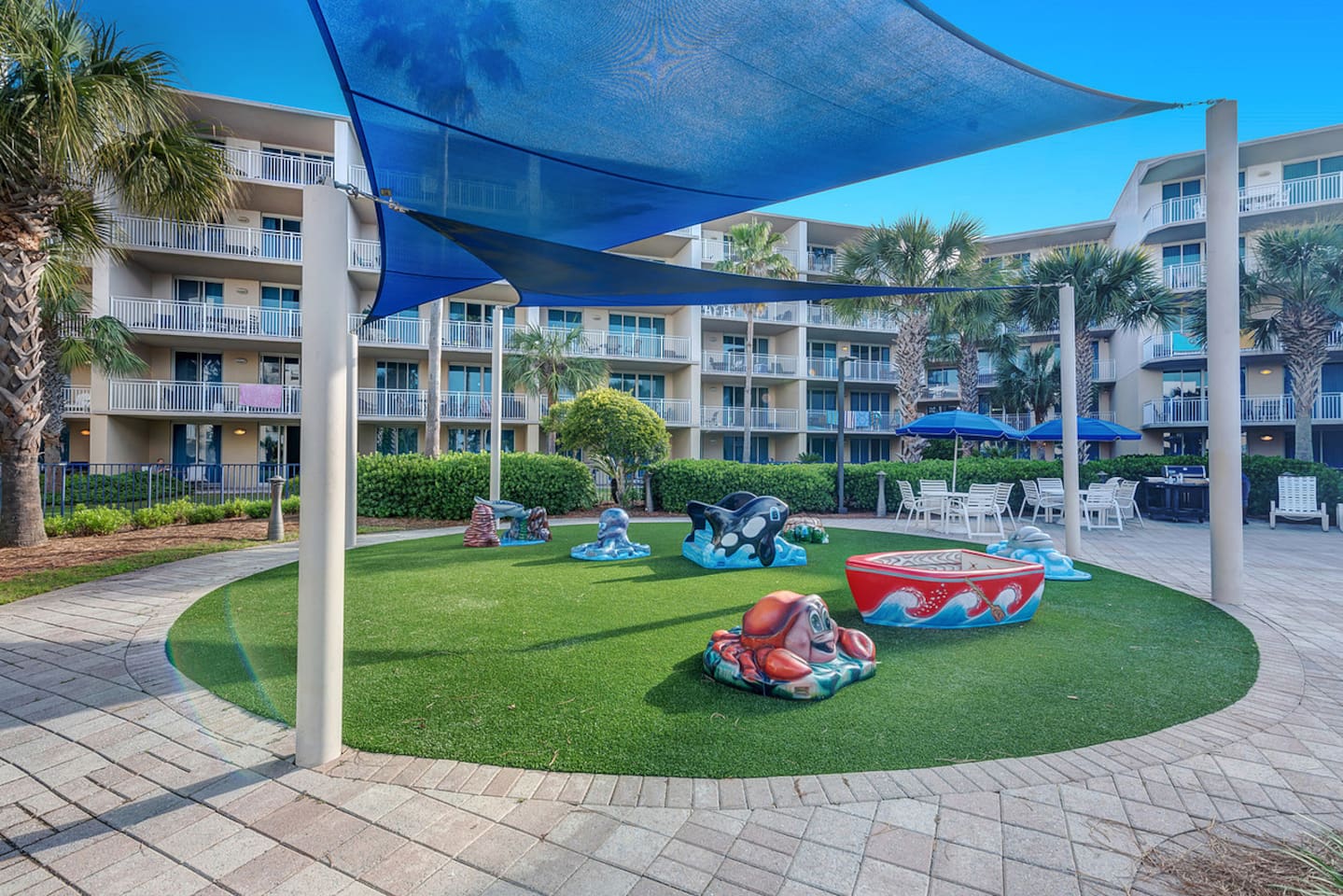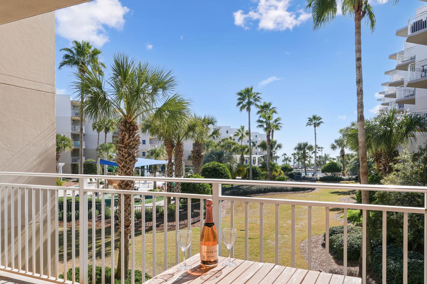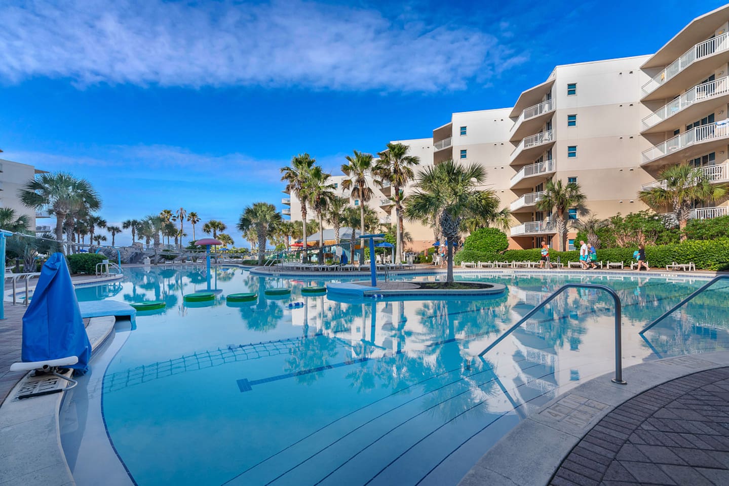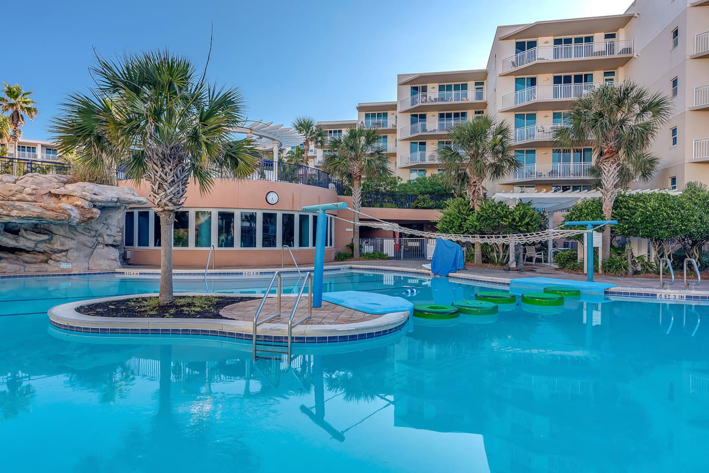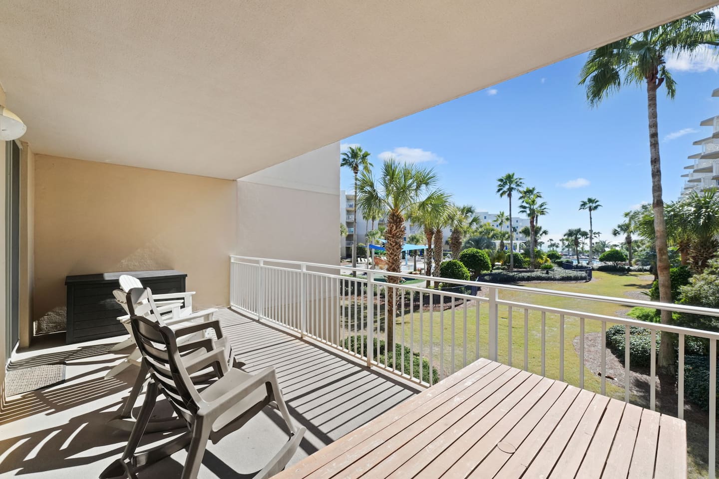 * Family-friendly condo at Waterscape Resort on Okaloosa Island * 3rd floor unit – steps to parking, pools & water park * Sleeps 8: 2 King Suites w/ private baths, bunk room & Murphy Bed (Queen Bed) * Resort amenities: pools, lazy river, gym, kids’ activities & snack bar * 4 Smart TVs throughout the condo – perfect for families or groups * Free daily beach service: 2 chairs + umbrella (seasonal) * Walk to Gulfarium, pier, shops & restaurants * Only 10-15 mins to Destin!