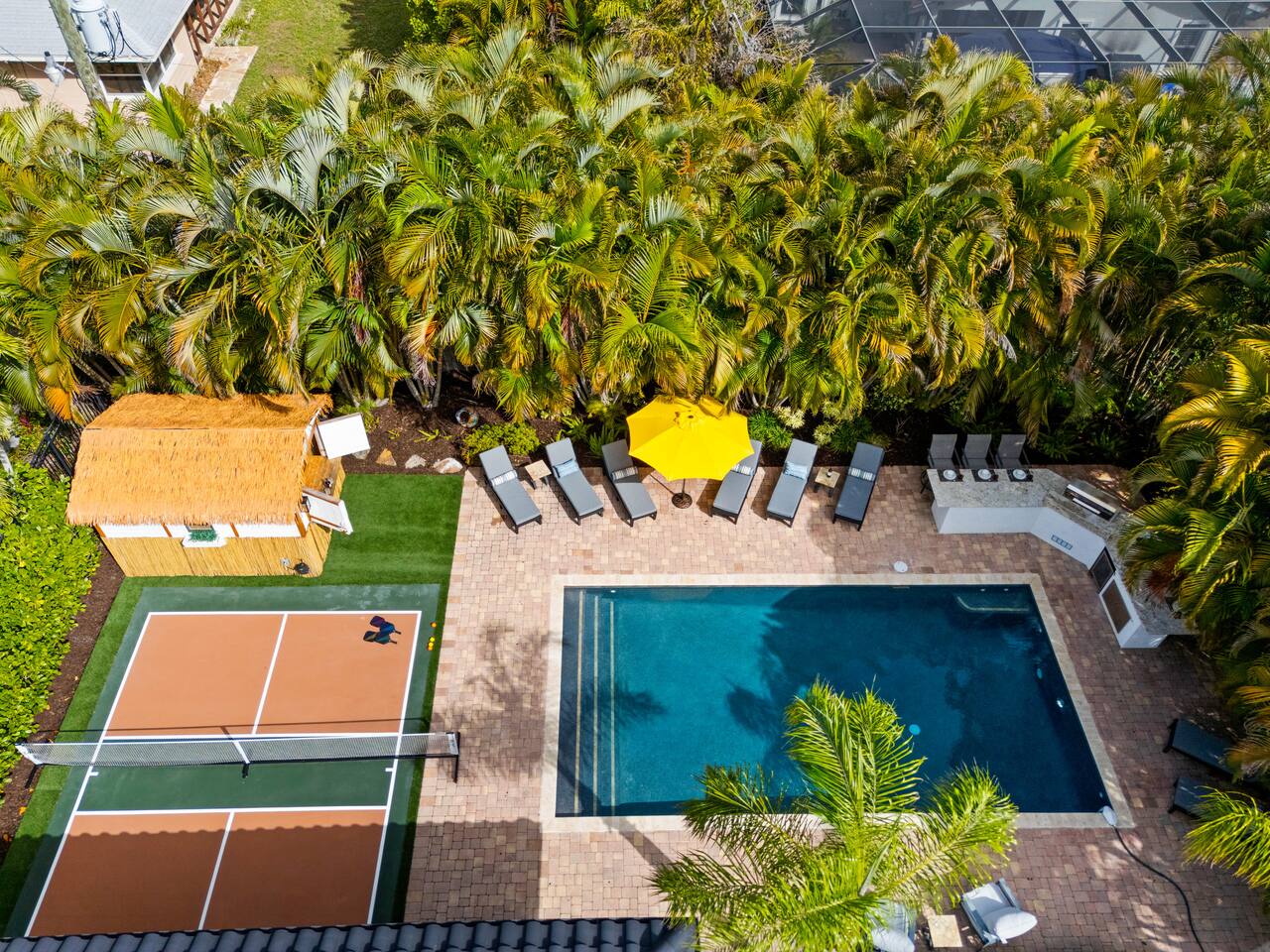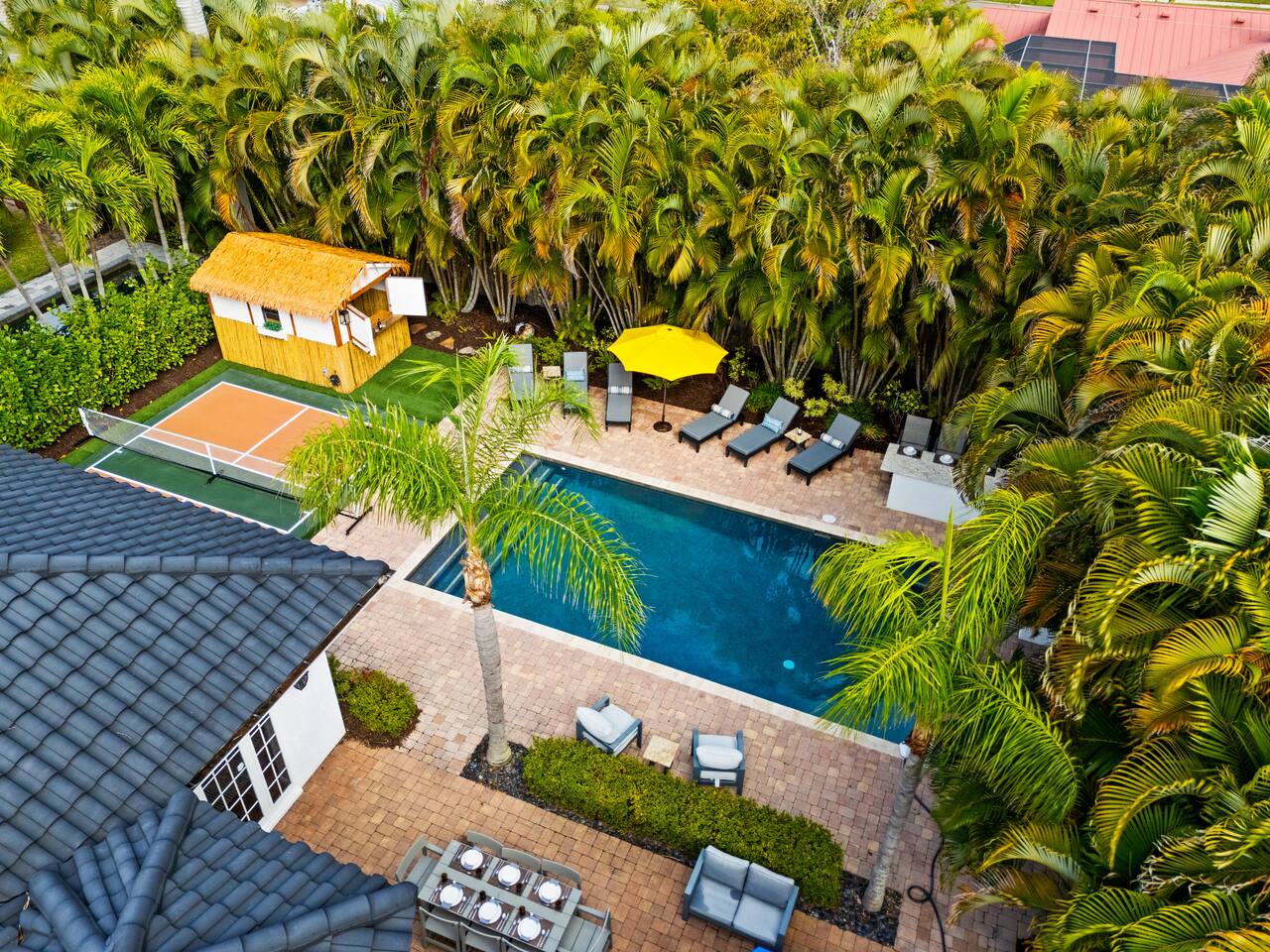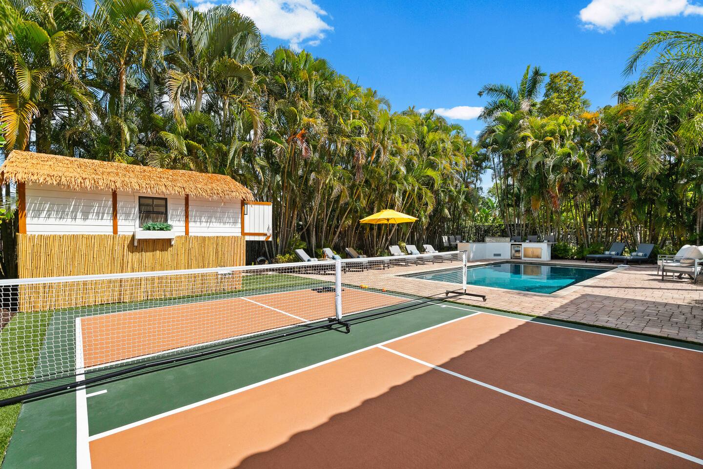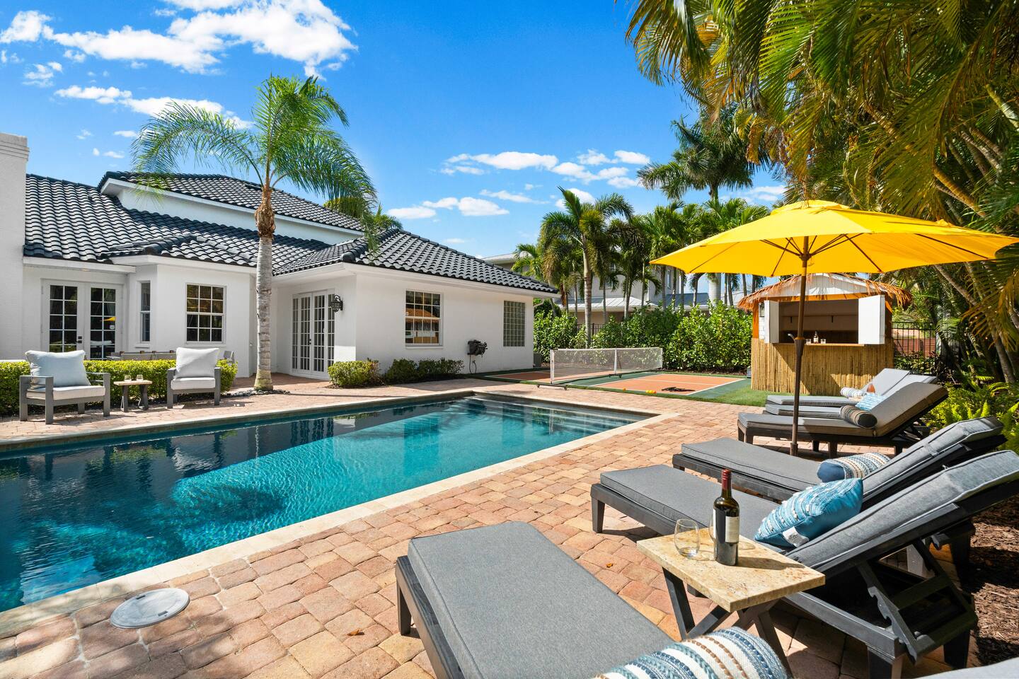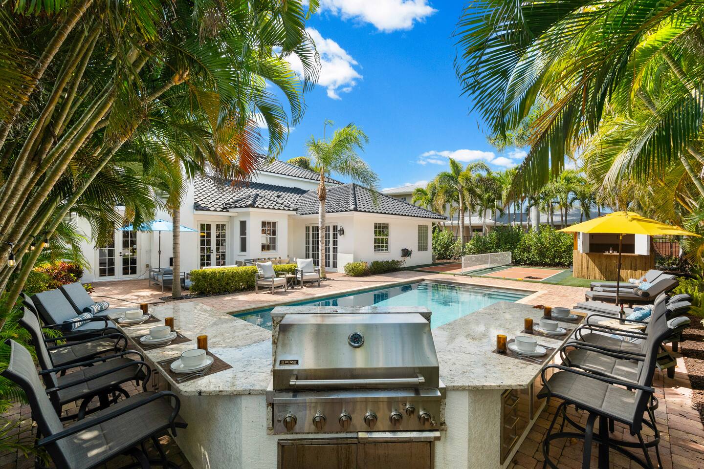 Escape to this 5BR, 4BA Bayside Retreat, just minutes to Siesta Keys! - Professionally Decorated - Sleeps 14 Guests - First Floor Master Suite with King Bed - Private Pool with option to heat pool - Designed with medi wabi-sabi inspo! - Gourmet Kitchen - Open Concept Living; Great for Family Gatherings - Soaring Ceilings - Restort Style Backyard Oasis - Outdoor Shower - Pickleball Court