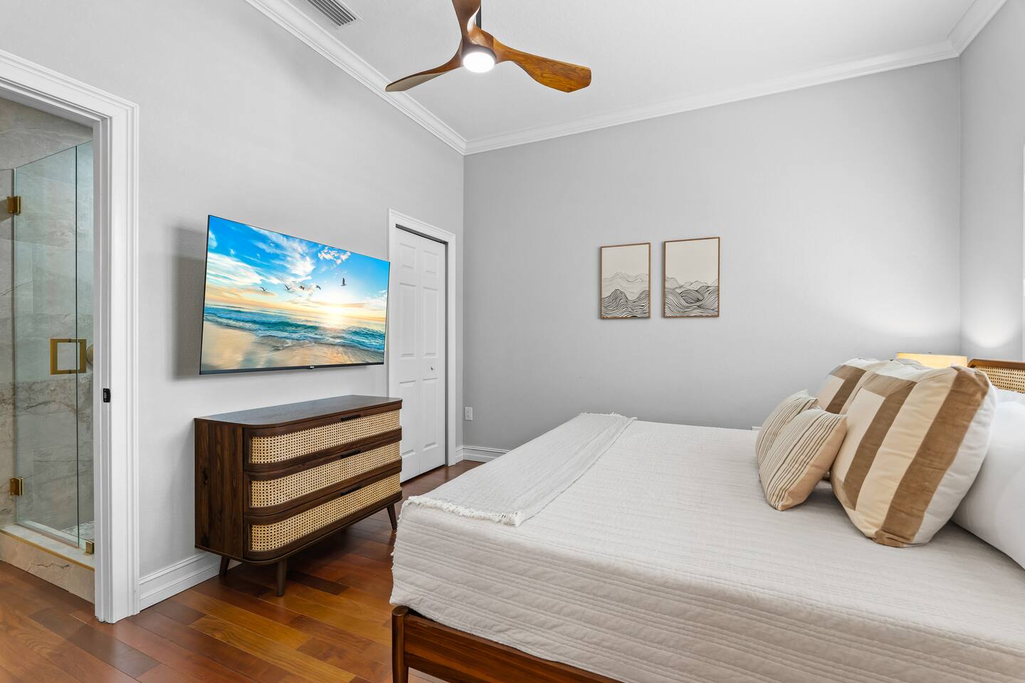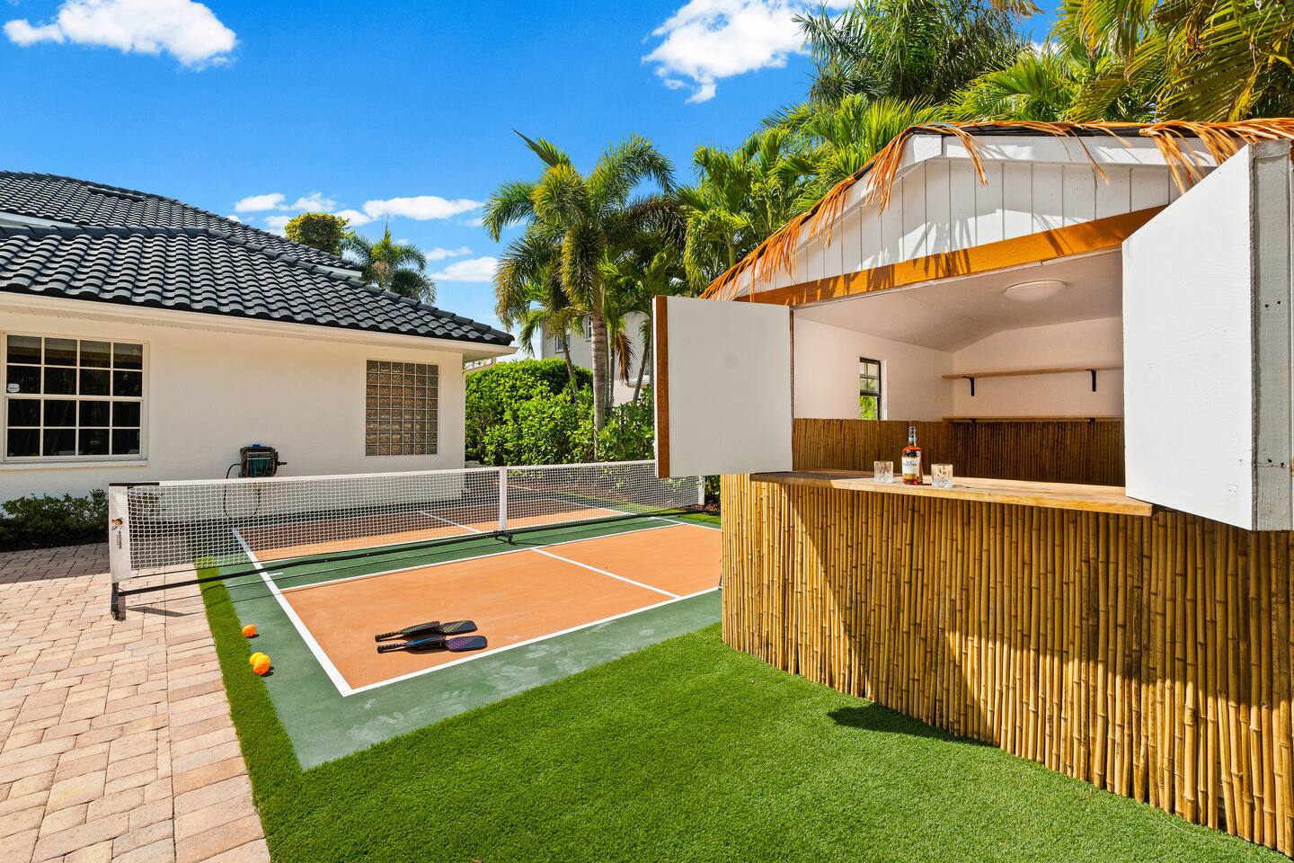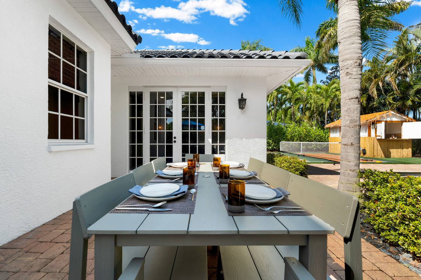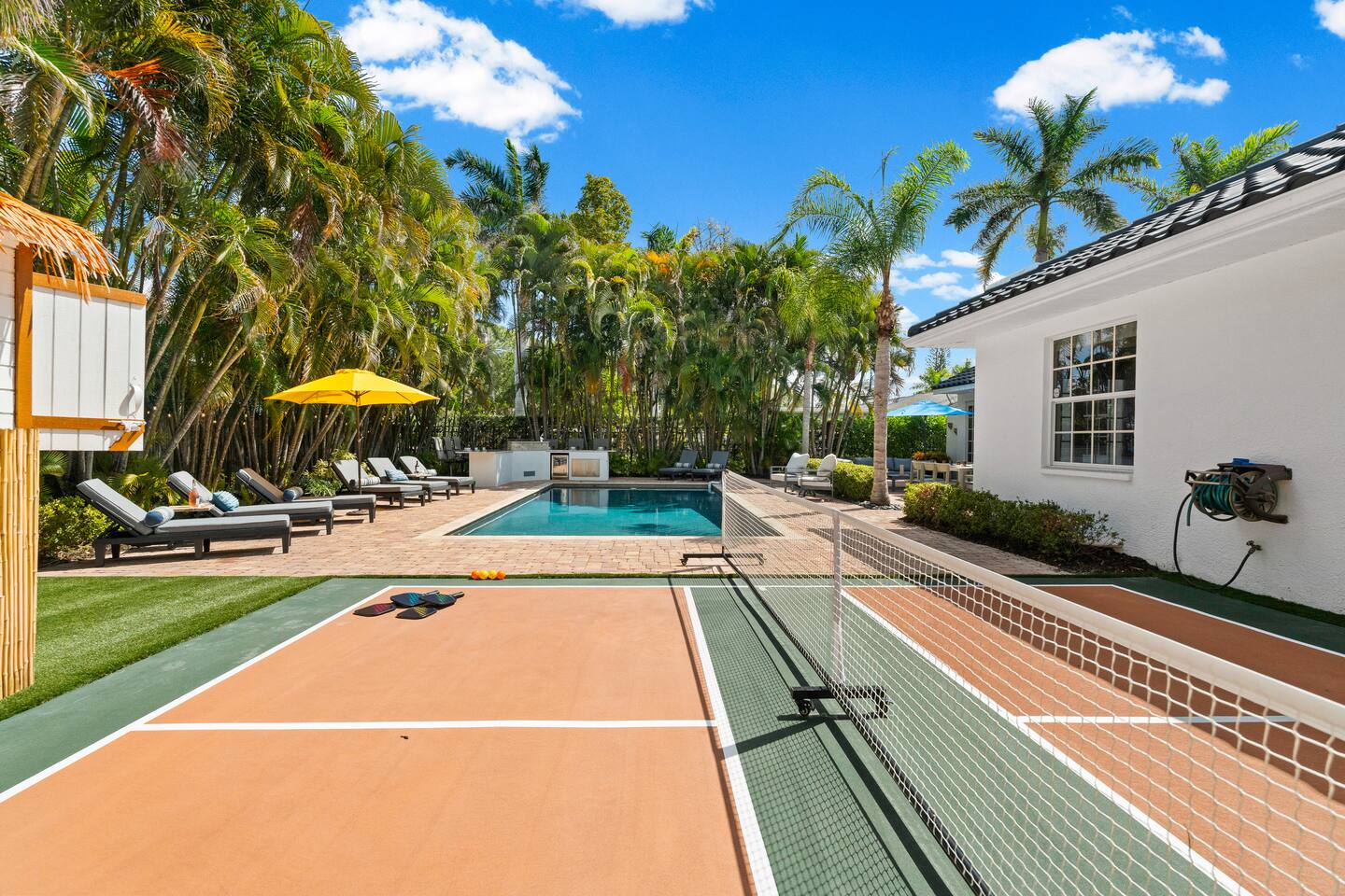Escape to this 5BR, 4BA Bayside Retreat, just minutes to Siesta Keys! - Professionally Decorated - Sleeps 14 Guests - First Floor Master Suite with King Bed - Private Pool with option to heat pool - Designed with medi wabi-sabi inspo! - Gourmet Kitchen - Open Concept Living; Great for Family Gatherings - Soaring Ceilings - Restort Style Backyard Oasis - Outdoor Shower - Pickleball Court