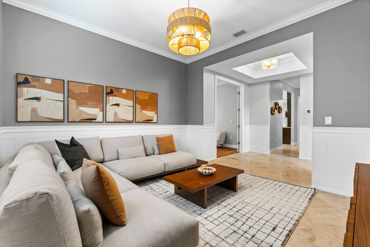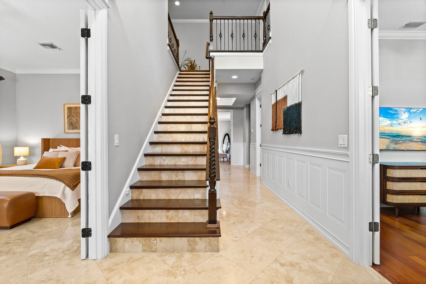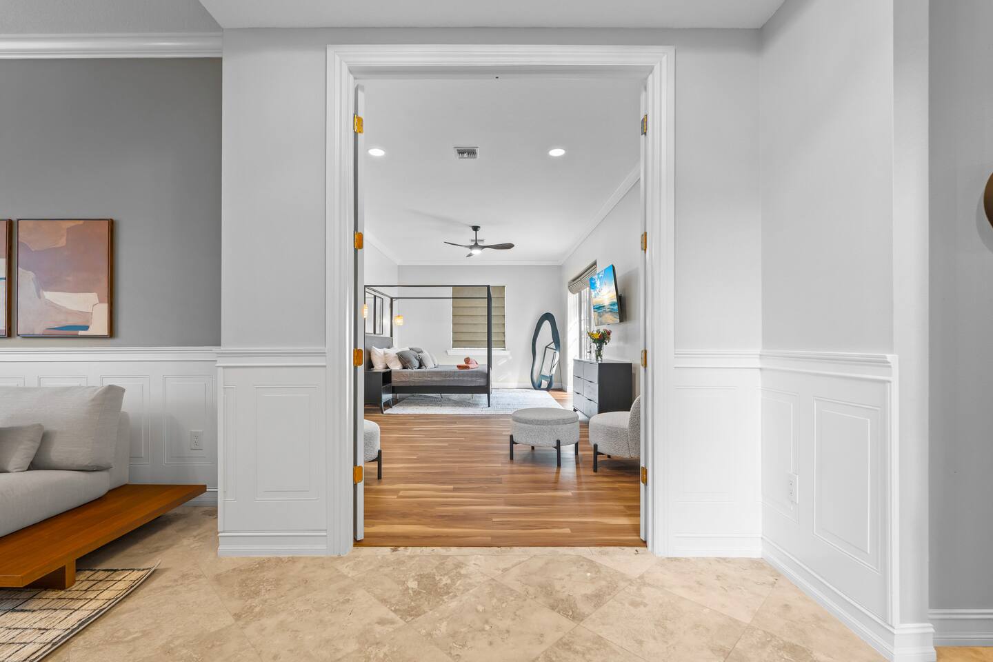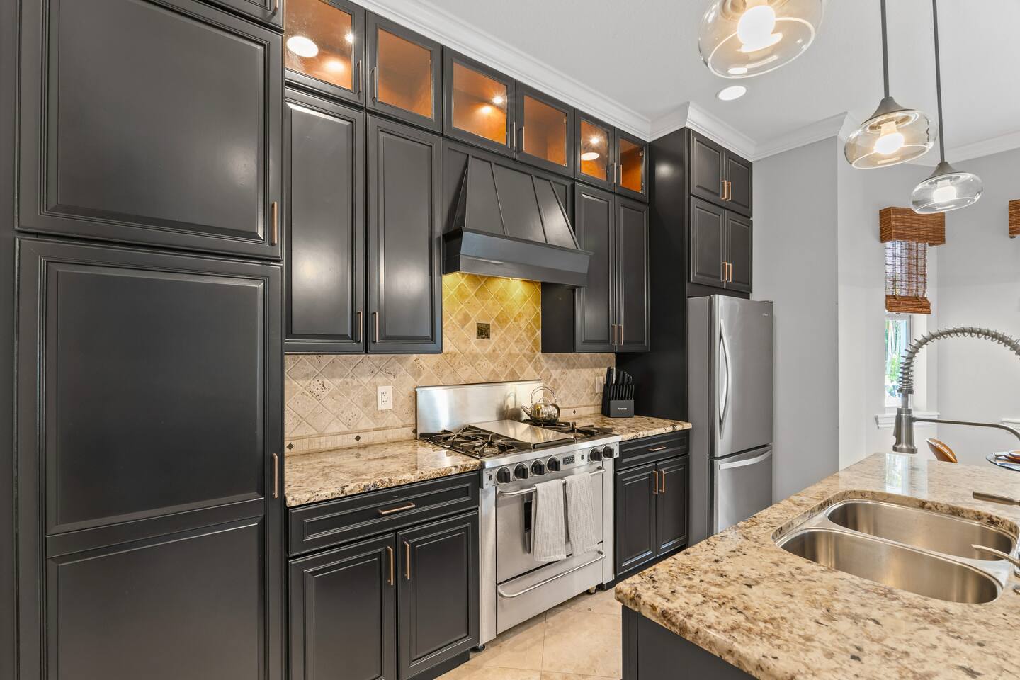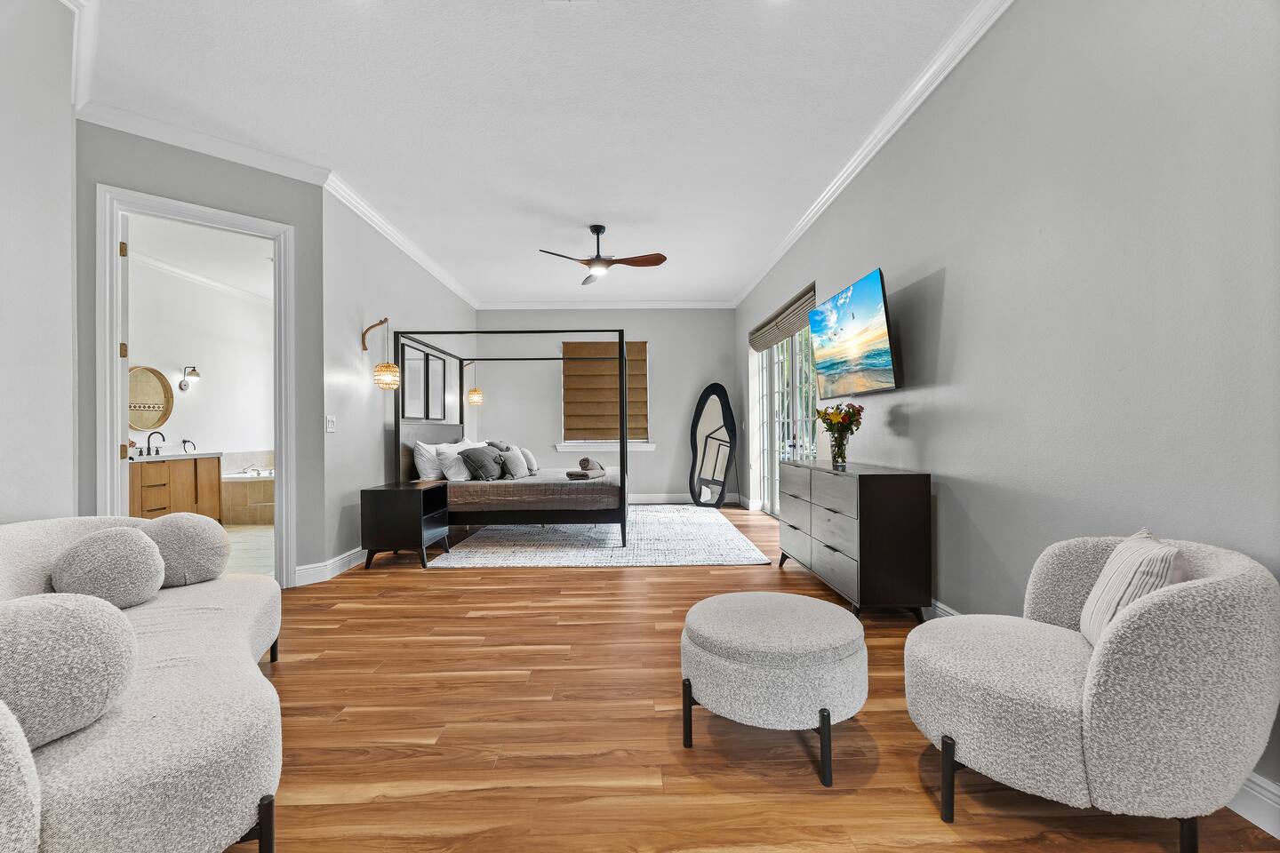 Escape to this 5BR, 4BA Bayside Retreat, just minutes to Siesta Keys! - Professionally Decorated - Sleeps 14 Guests - First Floor Master Suite with King Bed - Private Pool with option to heat pool - Designed with medi wabi-sabi inspo! - Gourmet Kitchen - Open Concept Living; Great for Family Gatherings - Soaring Ceilings - Restort Style Backyard Oasis - Outdoor Shower - Pickleball Court